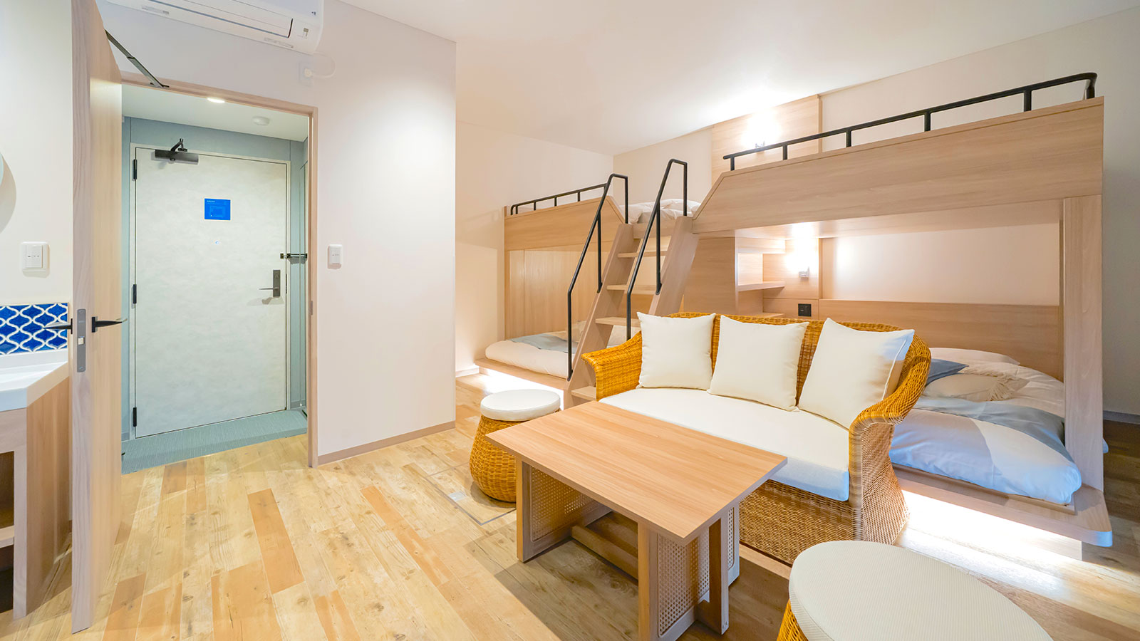 - ベッド クイーンベッド:2台、ダブルベッド:2台、エキストラベッド:1台(小学生以上の人数が5名の場合のみ)